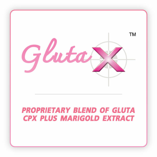 Gluta-X Proprietary Blend of Gluta CPX Plus Marigold Extract UNIQUE SELLING POINT ใช้ส่วนผสมของ GLUTA C ที่ผลิตภายใต้ KNOW-HOW เฉพาะจากญี่ปุ่น เพิ่มประสิทธิภาพการดูดซึมเข้าสู่ร่างกายสูงขึ้น 1.6 เท่า ด้วย LUTEIN-ZEAXANTHIN BIOMATRIX ใช้ส่วนผสมที่มี SYNERGISTIC EFFECT จาก แคโรทีนอยด์และกลูต้าไทโอน เพิ่มประสิทธิภาพในการปรับสีผิวให้สม่ำเสมอ และยืนยันด้วยผล INTERNAL TEST KEY BENEFITS ช่วยฟื้นฟูให้ผิวมีความยืดหยุ่น (SKIN ELASTICITY) มากขึ้น 3.5 เท่า ทำหน้าที่เป็น ORAL SUNSCREEN ช่วยให้ผิวทนแสงแดดเพิ่มขึ้น 2 เท่า ช่วยให้ผิวดูสว่างเพิ่มขึ้น 2 เท่า และลดปัญหาผิวหมองคล้ำลง 2 เท่า สนใจข้อมูลนวัตกรรมและงานวิจัย