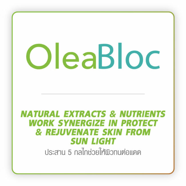 Olea25 Super Antioxidant from Olive Extract ที่มีค่าการต่อต้านอนุมูิลอิสระสูงที่สุดในโลกมากกว่า 6 ล้านหน่วย จุดเด่นของสารสกัด ให้ค่า ORAC สูงกว่า 6.8 ล้าน umole TE/100 Dual Antioxidant Action ทำหน้าที่เป็นได้ทั้ง Primary และ Secondary Antioxidant ในโมเลกุลเดียวกัน กระบวนการสกัดและการบริสุทธิ์ ที่เป็นกรรมสิทธิ์เฉพาะให้ปริมาณ สารสำคัญ Hydroxytyrosol เข้มข้นสูงถึง 25% รายแรกของโลก มีความคงตัวที่อุณหภูมิสูงถึง 200 องศาเซลเซียส เหมาะกับการผลิตเครื่องดื่ม ที่ผ่านกระบวนการ Pasteurizationประสิทธิผล แสดงฤทธิ์ยับยั้ง Tyrosinase enzyme ที่ทำหน้าที่ผลิตเมลานิน ในเซลล์สร้างเม็ดสี ได้ดีกว่า Kojic acid 2 เท่า ช่วยส่งเสริมและเพิ่มการ สร้างกลูต้าไทโอนใน เซลสร้างเม็ดสี Melanocyte ช่วยลดฝา และฝื่นแดงอักเสบที่…