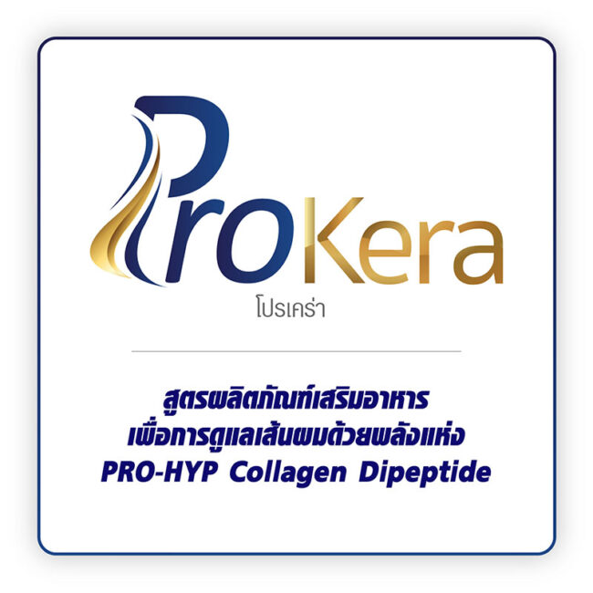 สูตรผลิตภัณฑ์เสริมอาหารเพื่อการดูแลเส้นผมตั้งแต่รากจรดปลายพร้อมบำรุงผิวและเล็บให้สุขภาพดี จุดเด่น ดูแลหนังศีรษะ ผม และเล็บให้แข็งแรงด้วยพลังแห่ง Hair follicle stimulating bioactive collagen dipeptide จาก HACP HACP ถูกย่อยที่ตับและเปลี่ยนเป็น Hair follicle stimulating bioactive collagen peptide Bioactive collagen peptide ช่วยกระตุ้นการเจริญของรากผม ยับยั้งการหลุดร่วงของเส้นผมด้วย DHT fighter biomatrix : The best 5 alpha reductase inhibitor phytonutrient มีส่วนช่วยบรรเทาอาการของโรคของหนังศีรษะบางชนิด เช่น ผมบางจากฮอร์โมนเพศชาย, ผมร่วงเป็นหย่อม ฟื้นบำรุงโครงสร้างของเคอราตินซึ่งเป็นโครงสร้างหลักของเส้นผมและเล็บด้วย Proline และ Cysteine บำรุงโครงสร้างของเคอราตินซึ่งเป็นโครงสร้างหลักของเส้นผมและเล็บ PROLINE จาก COLLAGEN TRIPEPTIDE …